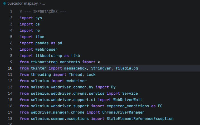 Ferramenta desktop em Python para prospecção comercial automatizada no Google Maps, com interface gráfica (Tkinter + ttkbootstrap) e automação via Selenium. Extrai e organiza dados completos — nome, telefone, site, endereço, CEP, latitude e longitude — já prontos para análise. Inclui geração de mapas interativos com Folium, facilitando a visualização geográfica e a tomada de decisões estratégicas.
